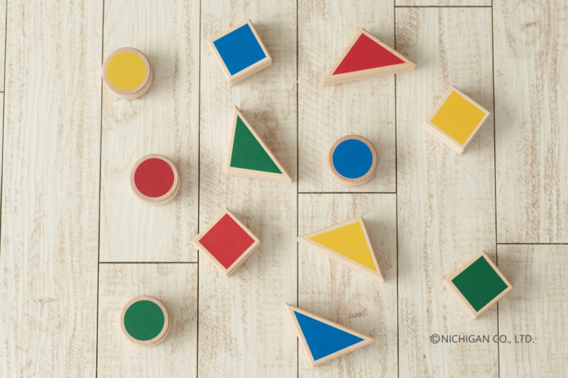 赤色の三角、青色の丸など子どもが認識しやすい色は親子のコミュニケーションツールになります。